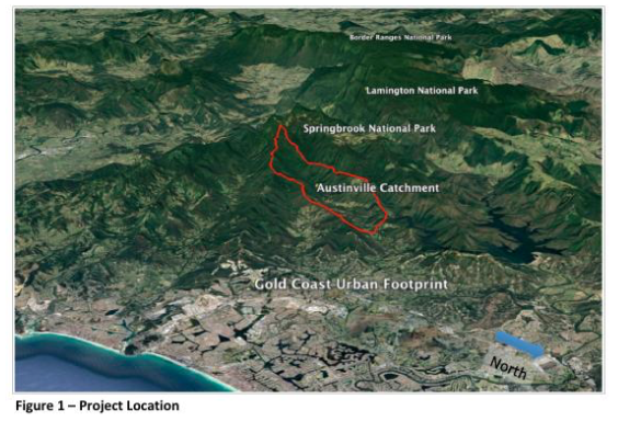 With its wet summers the Gold Coast and Hinterland, particularly its rainforests, has historically been considered relatively safe from severe bushfires. In 2019 everything changed. For the first time in recorded history, fire penetrated deep into rainforest areas of Lamington National Park. With climate change it is forecast that catastrophic fire conditions will become more common. To prepare for this increased risk, and better protect our cities and our biodiversity, we need to become better fire managers and to invest more in fire trails. There has been a major increase in interest in indigenous and ecological burning which serves the dual purposes of protecting our landscape and enhancing biodiversity. However, landscape scale use of these techniques requires maintained and accessible fire trails which can be used by fire management vehicles. The Project Area The aim of this project is to create a quality fire trail network over the Upper Austinville Catchment by renewing existing fire trails and creating new ones over land owned and managed by City of Gold Coast, Queensland Parks and Wildlife Service and private owners. As illustrated in Figure 1. the Austinville Catchment is a highly biodiverse buffer between the Gold Coast Urban Footprint and World Heritage Springbrook National Park.